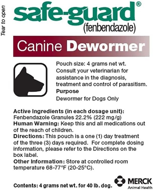 Safe-Guard (fenbendazole) Canine Dewormer for Dogs, 4gm pouch (ea. pouch treats 40lbs.)