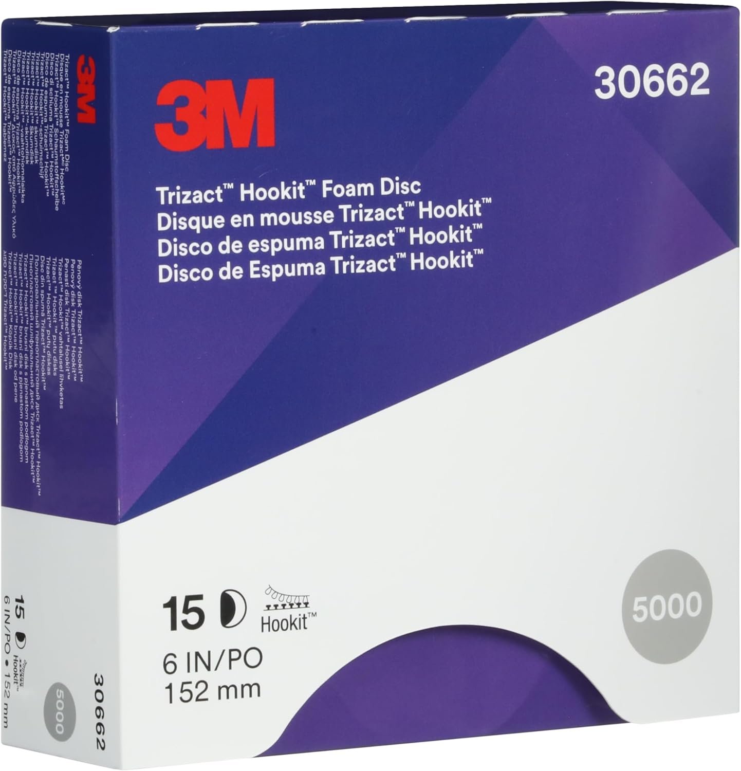 Trizact 3M Trizact Hookit Foam Disc, 30662, 6 in, P5000, 15 discs per carton , Blue